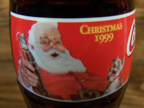 Coca '' Cola 1999 [ Christmas bottle ] SANTA & dog, 1 - 8 Oz Coke Bottle