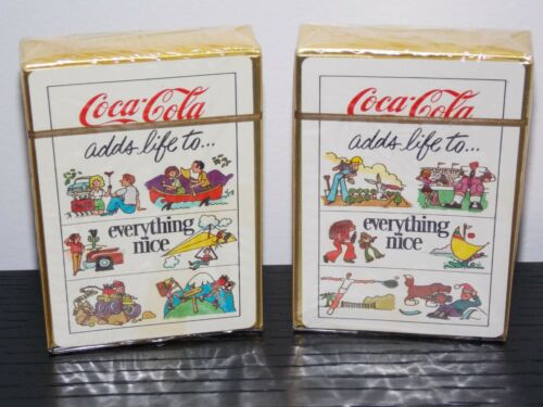 Title (ebay affiliate link): 1970''s Coca Cola Adds Life to Everything nice, 2-SEALED DECKs of People style