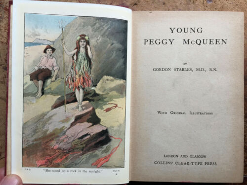 Title (ebay affiliate link): 1908? Young Peggy McQueen by Gordon Stables-4 Colour Plate by Warwick Goble