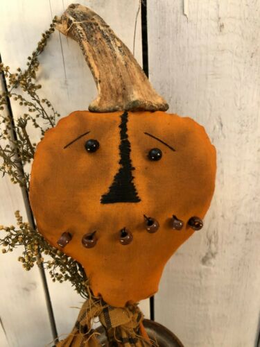 Primitive Pumpkin Doll Folk Art Doll Halloween Poke Crock Shelf Real Stem Beads