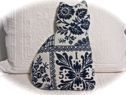 KITTY from DATED 1855 COVERLET~FLORAL NAVY & TAN~REVERSE SIDE BACKING~
