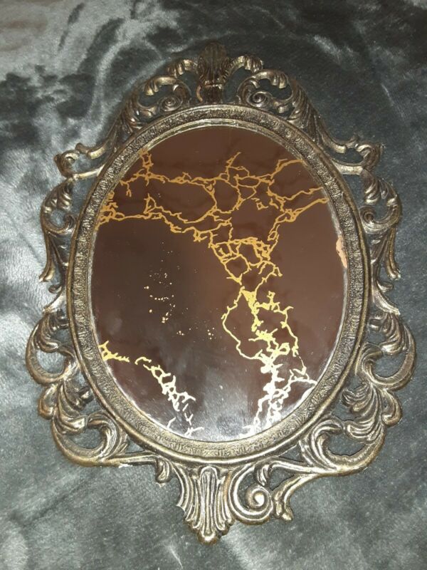 Large Vintage Oval Brass Frame with mirror 10 x 7 Italy?