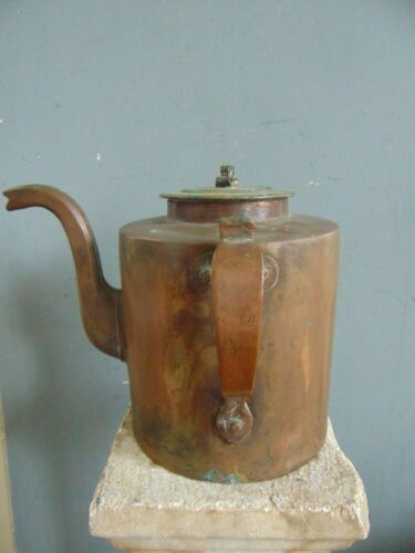 LARGE ANTIQUE HANDMADE COPPER GOOSE-NECK TEA KETTLE / TEAPOT