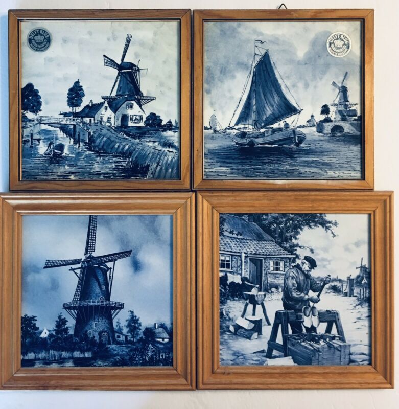 DELFT BLUE HAND PAINTED HOLLAND TILES SHOEMAKER WINDMILL PICTURES