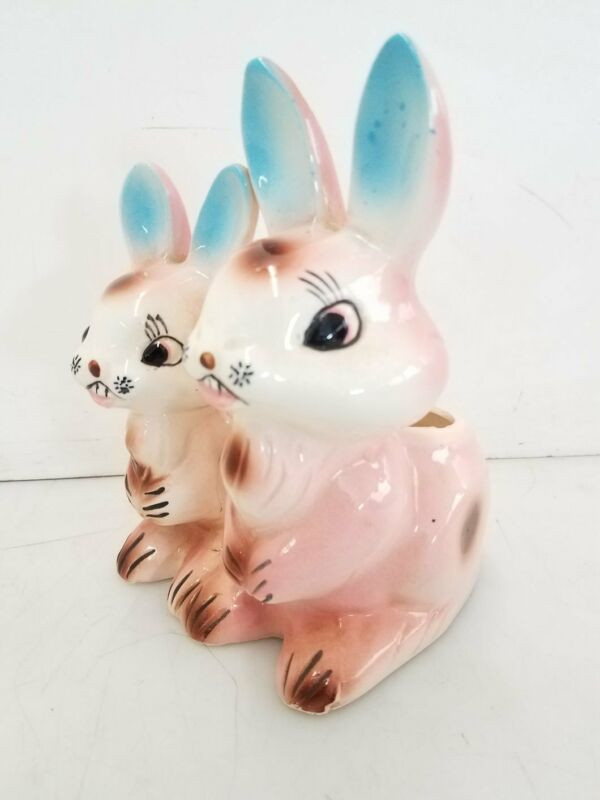 Title (ebay affiliate link): VTG Ceramic Hand-Painted Pink Bunnies Rabbits Planter Wales Japan 7"