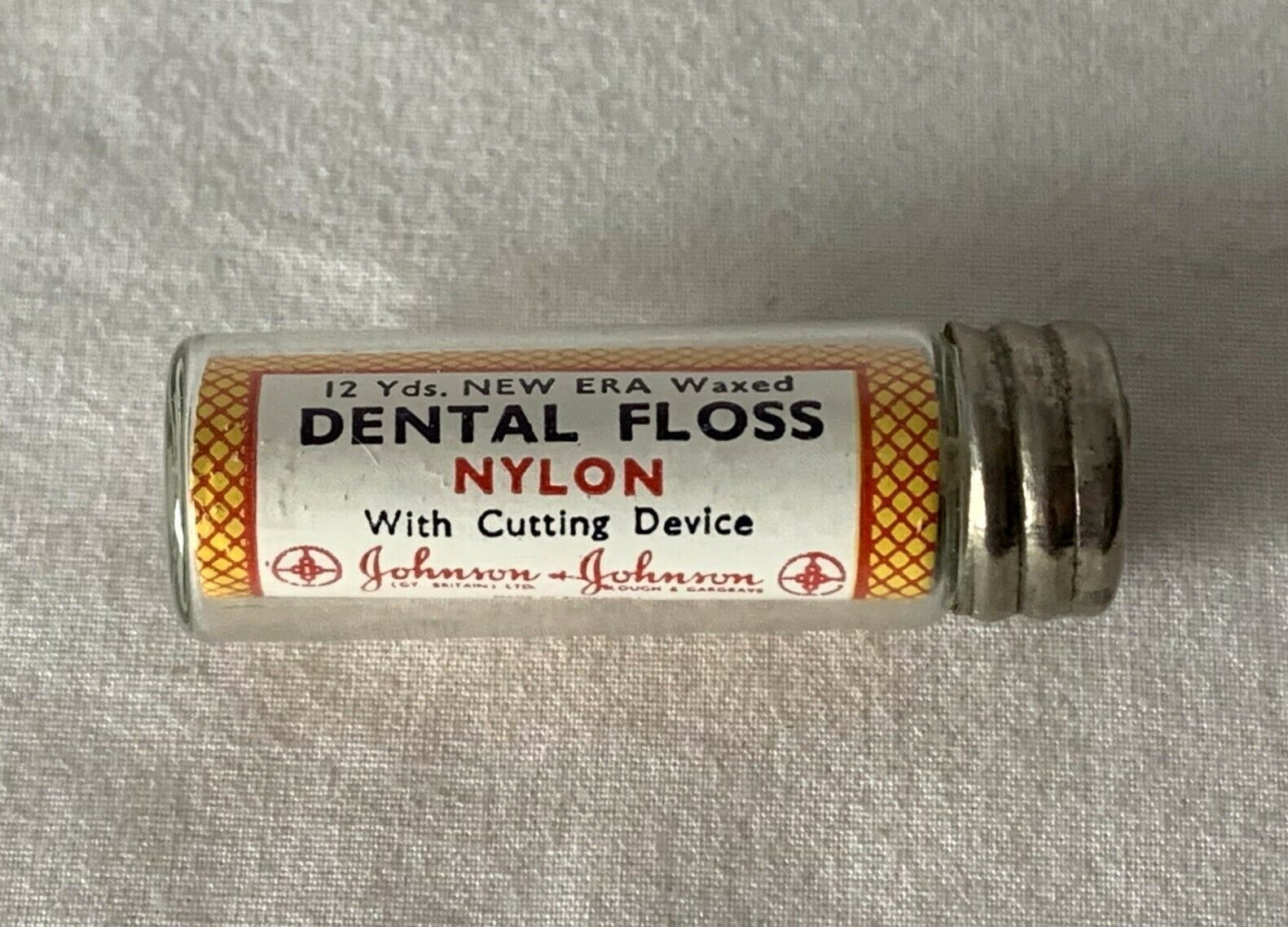 Title (ebay affiliate link): Vintage Glass Johnson & Johnson Dental Floss Tape in Tube