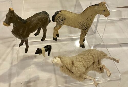#6 3 Antique 3 1/2" German Wool Putz Sheep & Horses & Pig