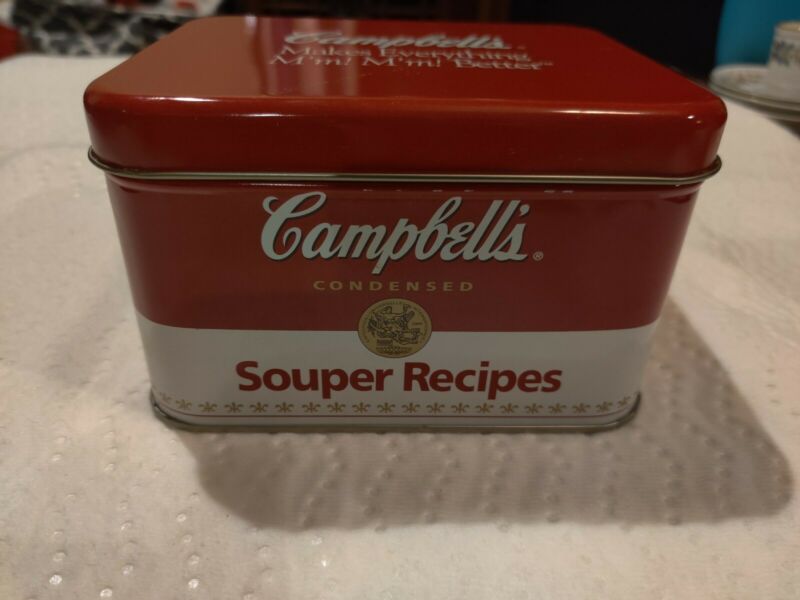 Title (ebay affiliate link): Vintage Campbells Soup Collectable Tin Box SOUPER RECIPES with 10 Recipe Cards