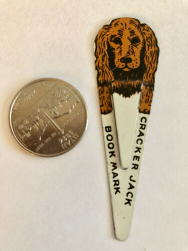 Title (ebay affiliate link): CRACKER JACK BOOK MARK With DOG - Beautiful Vintage Metal Item
