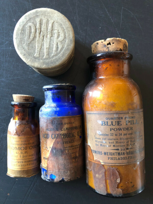 Title (ebay affiliate link): Vintage Powers Weightman Rosengarten Co Pharmacy Lot Amber Cobalt Blue Bottles