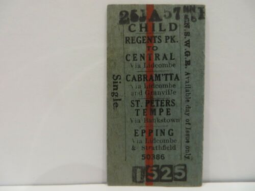 Title (ebay affiliate link): New South Wales Government Railways NSWGR Child Ticket Regents Pk - Central 1957