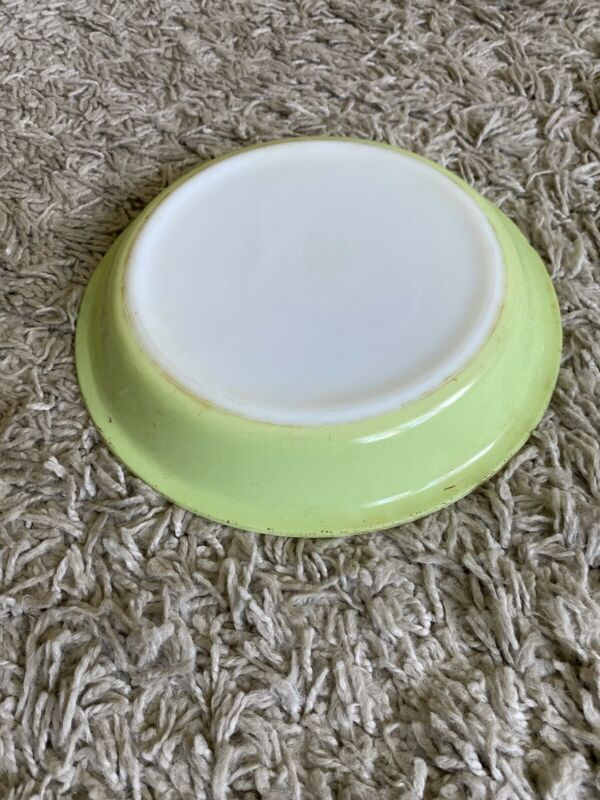 Title (ebay affiliate link): Vintage 9" Pyrex Lime Green and White Milk Glass Pie Pan 909 Ovenware