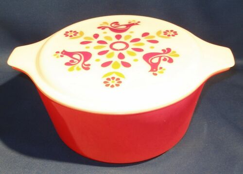 Vintage PYREX 1.5 Quart Casserole Dish w/Lid FRIENDSHIP Pattern Red Bird Pattern