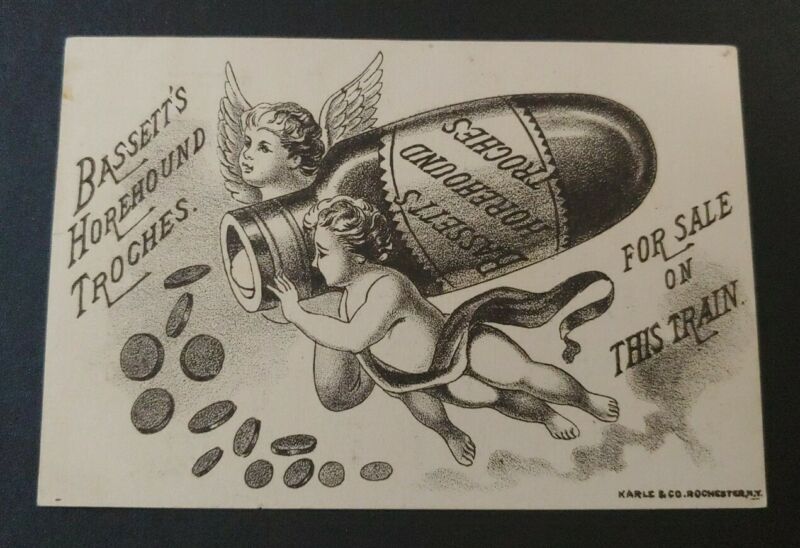 Title (ebay affiliate link): Trade Card BASSETT''S HORSEHOUND TROCHES - CHERUBS SPREADING PILLS FROM BOTTLE