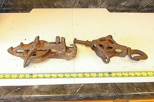 Title (ebay affiliate link): 2 OLD FARM HAY BARN TROLLEY PULLEY LOT B