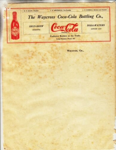 Title (ebay affiliate link): THE WAYCROSS COCA-COLA BOTTLING CO. LETTERHEAD UNUSED NOT DATED 1910 - 1919