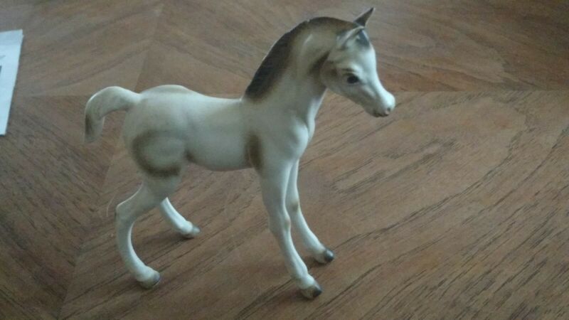 Title (ebay affiliate link): Vintage Josef Originals horse foal white tan ceramic miniature animal label