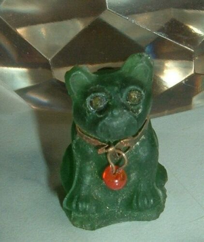 Title (ebay affiliate link): Antique Green Glass Cracker Jack Dog Charm Cute!! French Bulldog ?