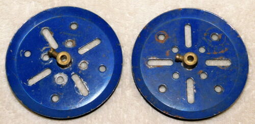 ANTIQUE / VINTAGE MECCANO PULLEY WHEELS x 2 - BLUE SLOTTED - AS FOUND