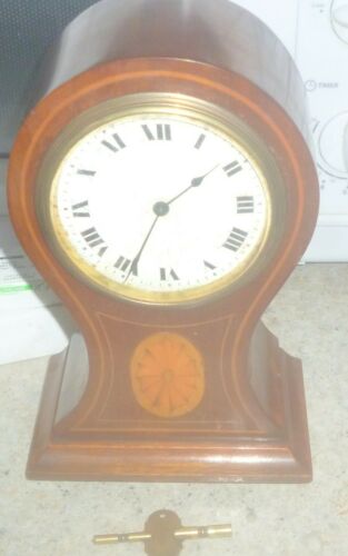 Title (ebay affiliate link): Edwardian mahogany and boxwood strung balloon mantle clock+KEY IN WORKING ORDER