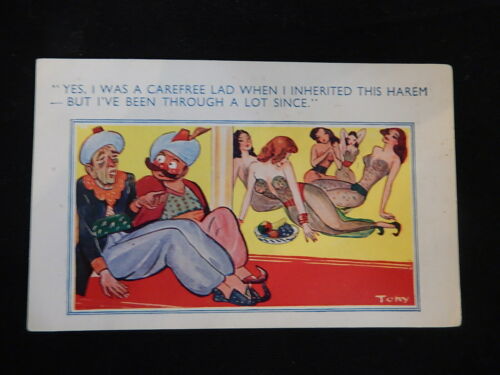 Title (ebay affiliate link): Vintage Risque, Seaside Humour, Sheik in Harem, in Fair Condition, 1950s
