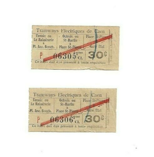 Title (ebay affiliate link): 2 TICKETS, BILLETS 30 c, TRAMWAYS ELECTRIQUES DE CAEN, FRANCE,