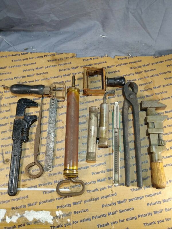 Title (ebay affiliate link): Antique Tool Lot Vintage Grease Gun Pliers