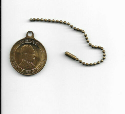 1950s IKE DWIGHT D EISENHOWER PRESIDENT COIN TYPE KEYCHAIN KEYRING I LIKE IKE