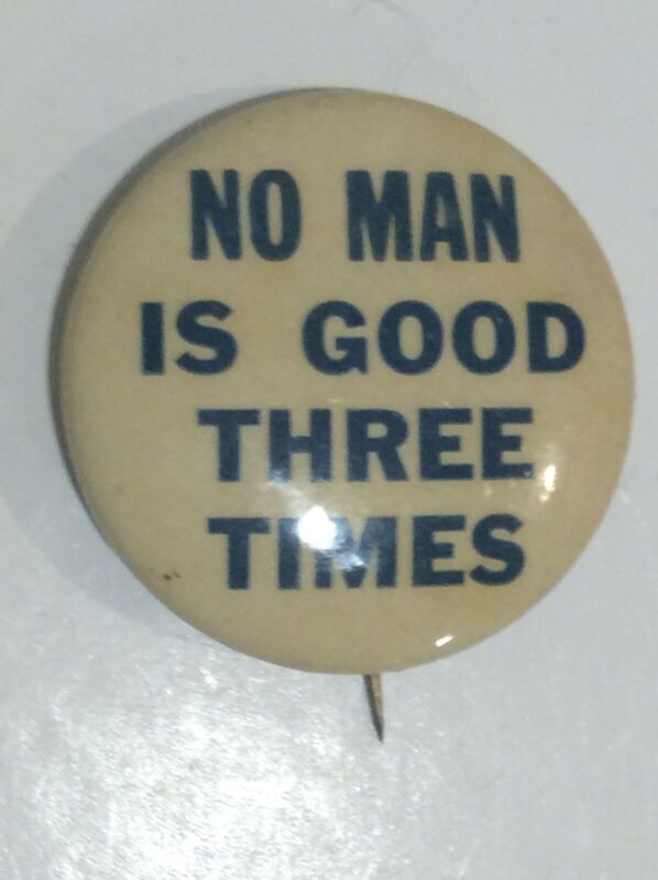 1940 NO MAN IS GOOD 3 TIMES anti-Roosevelt WILLKIE President pinback button z