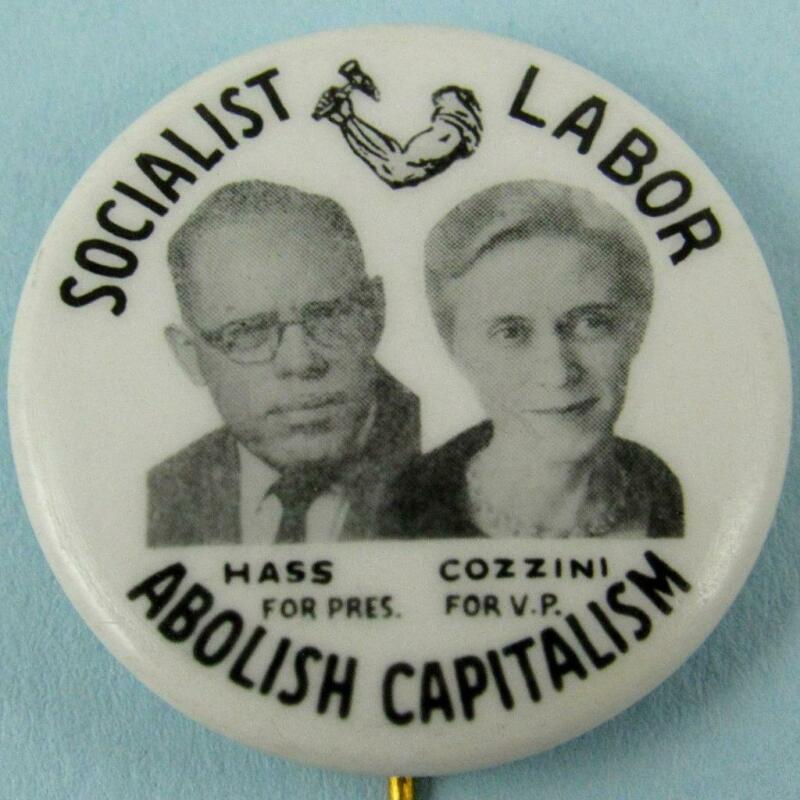 Title (ebay affiliate link): 1960 ERIC HASS & GEORGIA COZZINI SOCIALIST LABOR PARTY PRESIDENTIAL PIN BUTTON