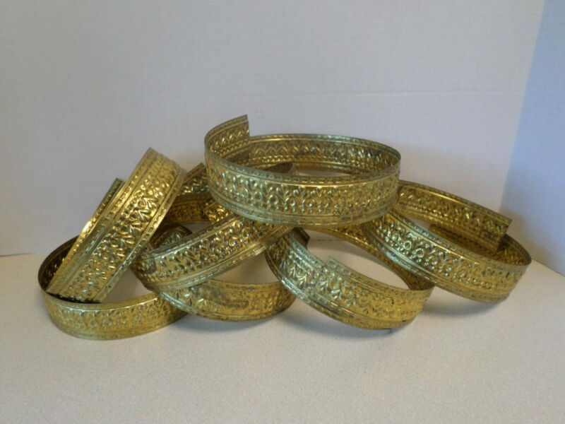 7 VINTAGE ANTIQUE STAMPED BRASS BANDING FOR OIL LAMPS/ FURNITURE TRIM