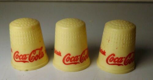 Title (ebay affiliate link): Lot Of 3 Vintage Drink Coca Cola Coke Yellow Plastic Advertising Thimbles