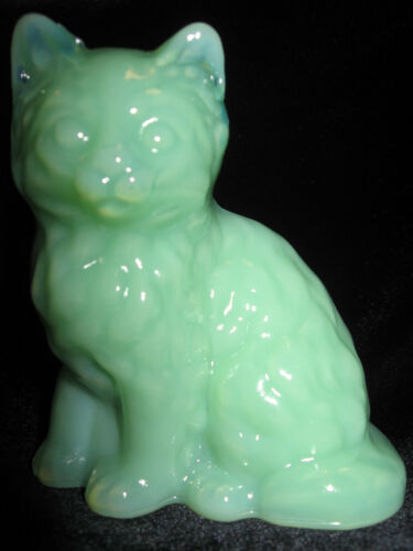 Title (ebay affiliate link): Jadeite art glass Cat Kitten paperweight kitty art jadite jade Green milk opaque