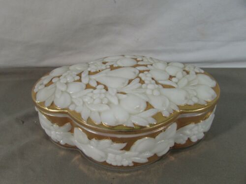 AWCO Charleton Milk Glass Fruit Pattern Covered Dish