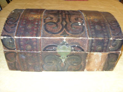 ANTIQUE DOLL TRUNK LITHO EMBOSSED VERY NICE!!