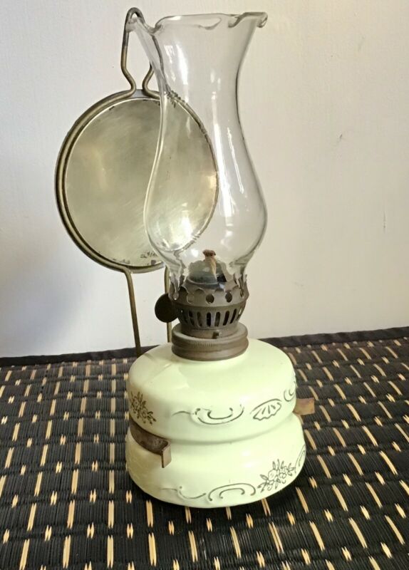 Title (ebay affiliate link): Antique Ceramic + Brass Gas Lamp with Glass Shade, nightstand or wall sconce