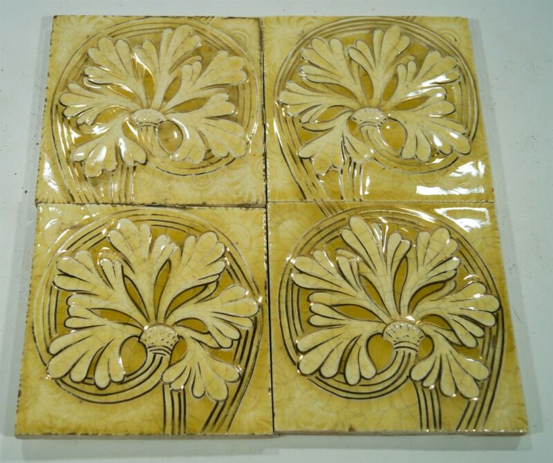 Title (ebay affiliate link): 4 Antique Providential Tile Works 19th Century 6 x 6 Cream & Gilt Majolica Tiles
