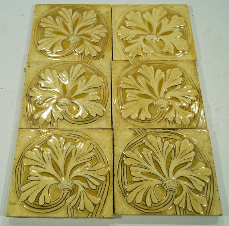 Title (ebay affiliate link): 6 Antique Providential Tile Works 19th Cent 5.25 x 6 Cream & Gilt Majolica Tiles