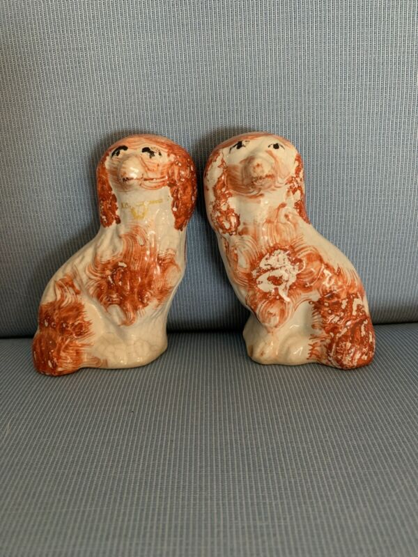 Set Of Two Vintage Staffordshire Dogs Spaniels