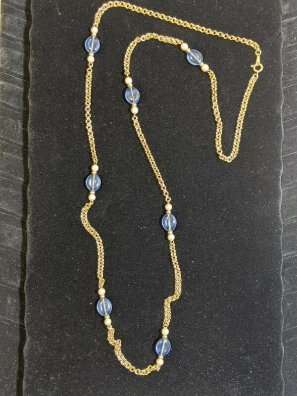 Title (ebay affiliate link): Vintage Avon Gold Tone Purple Round Glass Bead Pearl Long Necklace