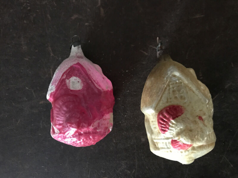 2 Antique German Christmas Glass Ornaments House With TURKEY NO RESERVE!