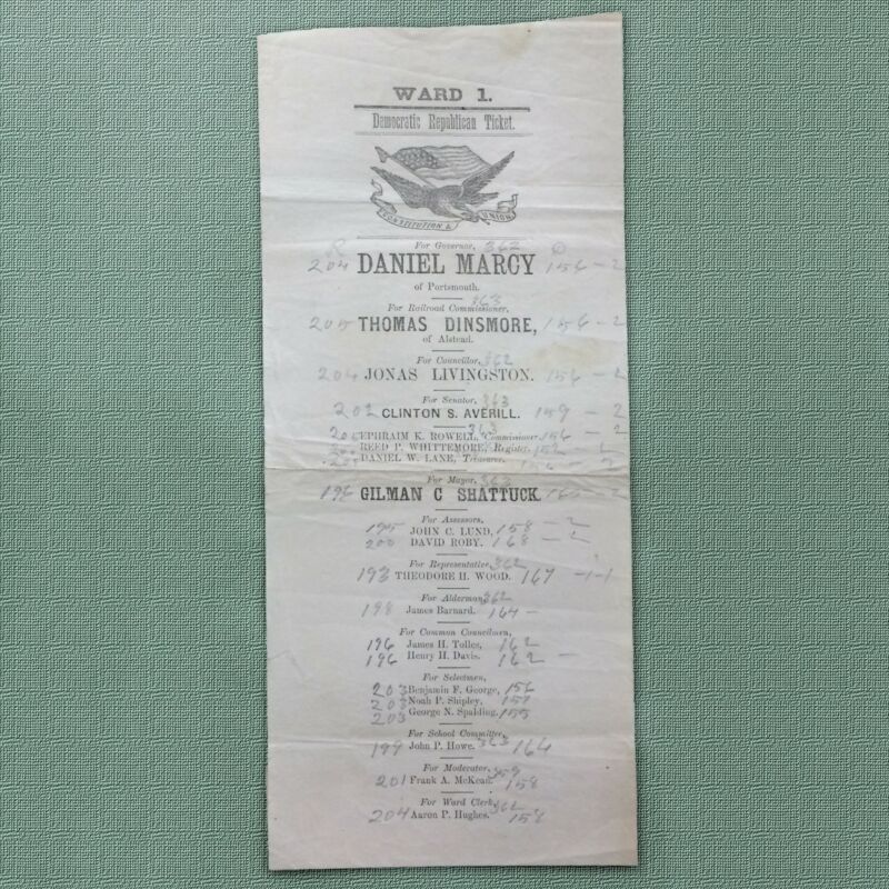 Title (ebay affiliate link): 1876 DEMOCRATIC REPUBLICAN PARTY NEW HAMPSHIRE GOVERNOR''S TICKET DANIEL MARCY