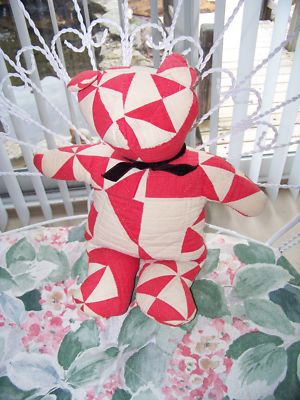 ANTIQUE QUILT DOLL TEDDY BEAR RED WHITE CUTTER FABRIC