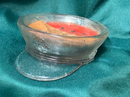 Antique PLA TOY US Military Hat Cap Glass Candy Container Original Candy & Seal