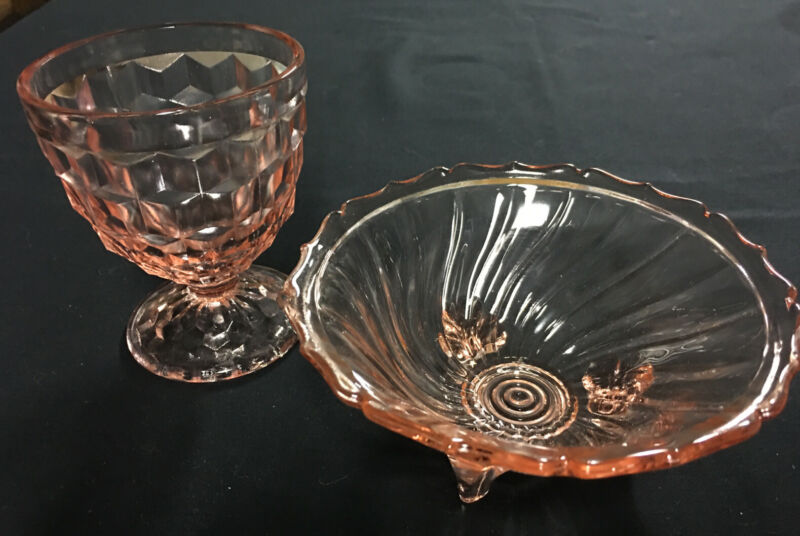Jeanette Pink Depression Glass Swirl Pattern Bowl And Candy Dish Cubist Pattern