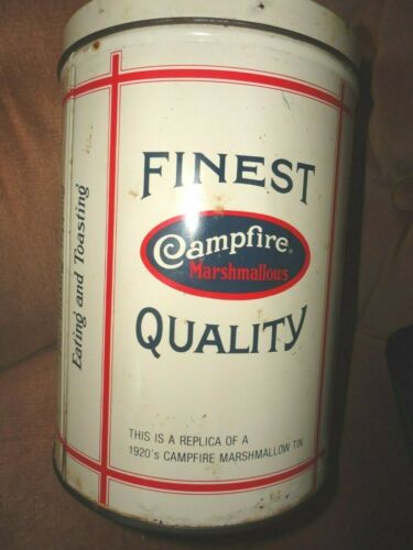 Title (ebay affiliate link): Vintage Borden Campfire Marshmallow Tin 8.25" Tall Round 16oz.
