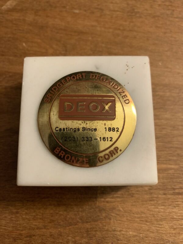 Title (ebay affiliate link): Bridgeport Deoxidized Bronze Corp Advertising Paperweight