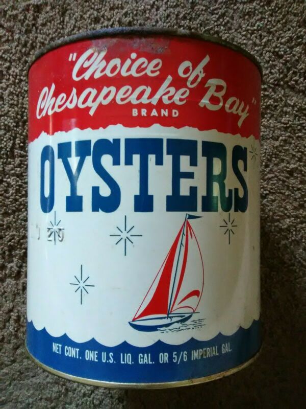Title (ebay affiliate link): Rusty Gold! "Choice of the Chesapeake Bay" brand 1 Gallon Oyster Tin Can