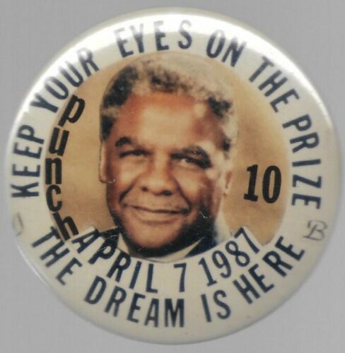 HAROLD WASHINGTON KEEP YOUR EYES ON THE PRIZE CHICAGO POLITICAL PIN