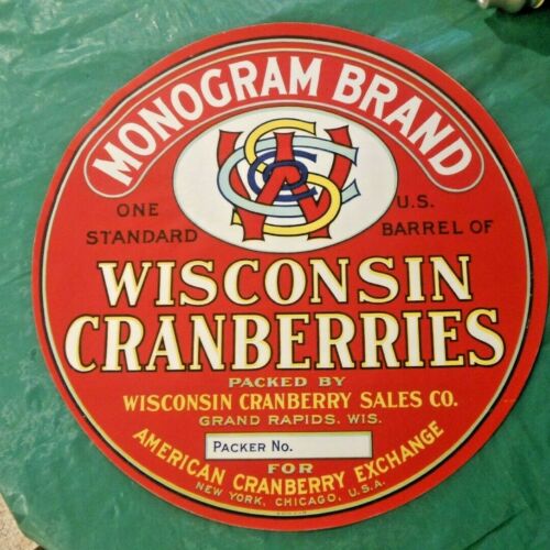 Title (ebay affiliate link): Monogram Brand Wisconsin Cranberries Cranberry Barrel Label, Grand Rapids, WI T